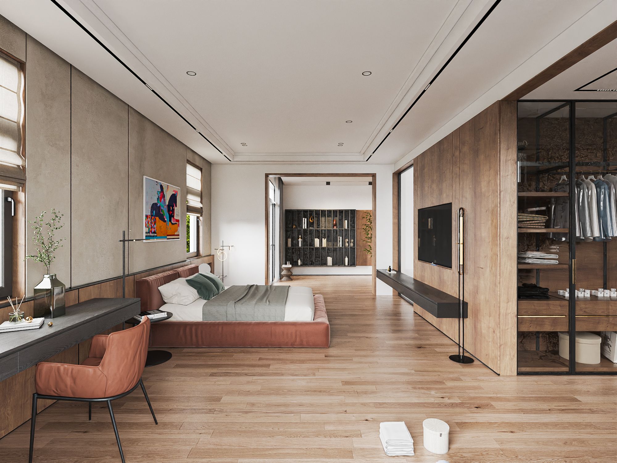 Nằm trong một khu đô thị tại Hà nội, biệt thự được thiết kế theo định hướng hiện đại – đương đại, nhấn mạnh sự cân bằng giữa tính sang trọng, công năng sử dụng và cảm giác ấm áp của không gian ở gia đình. Không gian nội thất được tổ chức mạch lạc, ưu tiên sự thông thoáng nhưng vẫn đảm bảo tính riêng tư cần thiết Khác với biệt thự nghỉ dưỡng, kiến trúc và nội thất ở đây hướng đến trải nghiệm sống dài hạn, tiện nghi nhưng không phô trương, phù hợp với nhịp sống đô thị Hà Nội.