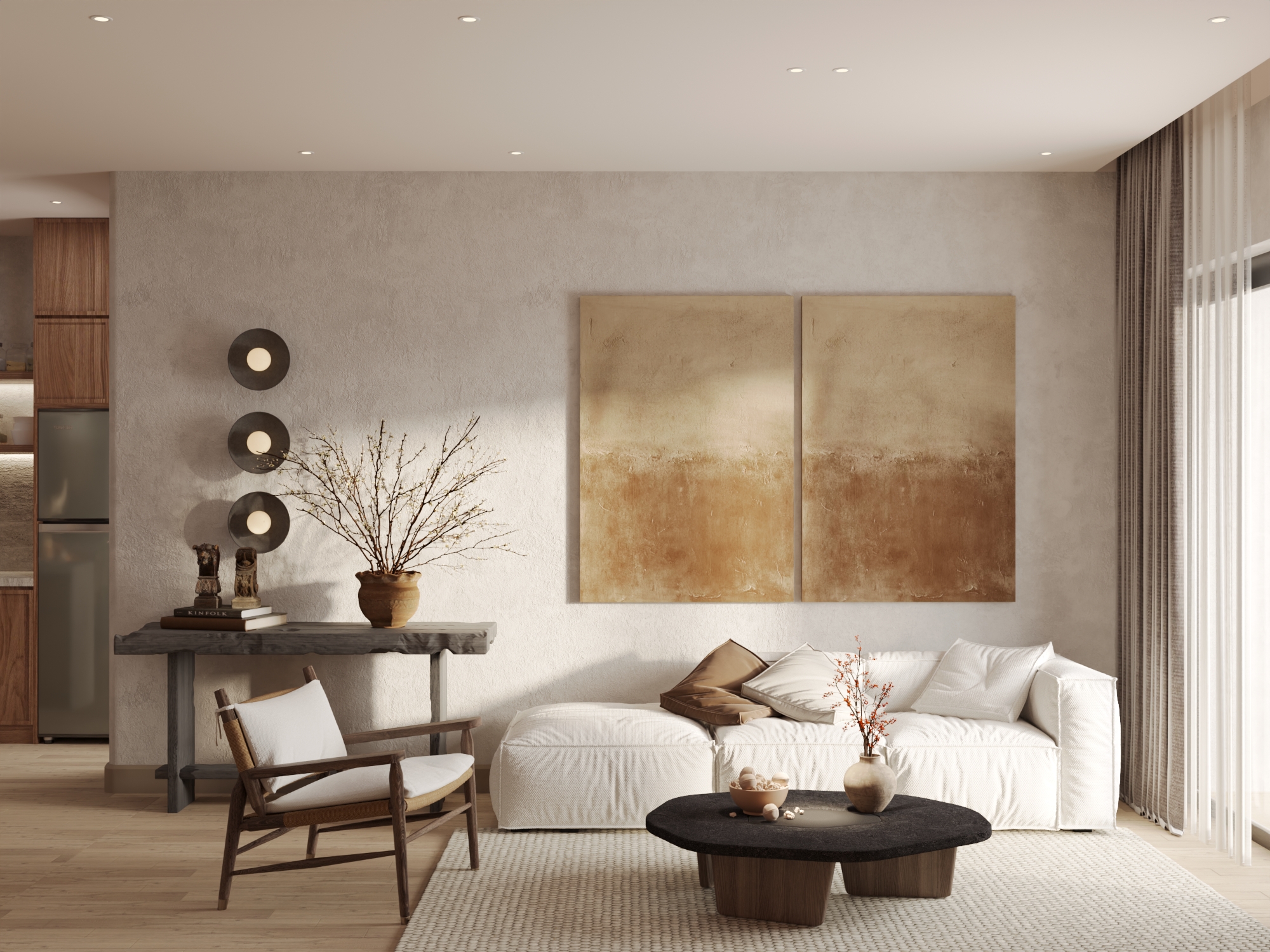 Nằm tại Long Biên, Hà Nội, KHAISON APARTMENT là một dự án căn hộ cao cấp do AAW Construction & Design Company thiết kế, hoàn thành. Với phong cách thiết kế tối giản nhưng đầy ấm cúng, căn hộ sử dụng gam màu trung tính, kết hợp nội thất gỗ tự nhiên cùng ánh sáng dịu nhẹ, tạo nên một không gian sống thư thái và thanh lịch. Từng khu vực trong căn hộ được bố trí hợp lý, tối ưu hóa công năng, mang lại trải nghiệm sống tiện nghi và thoải mái.
