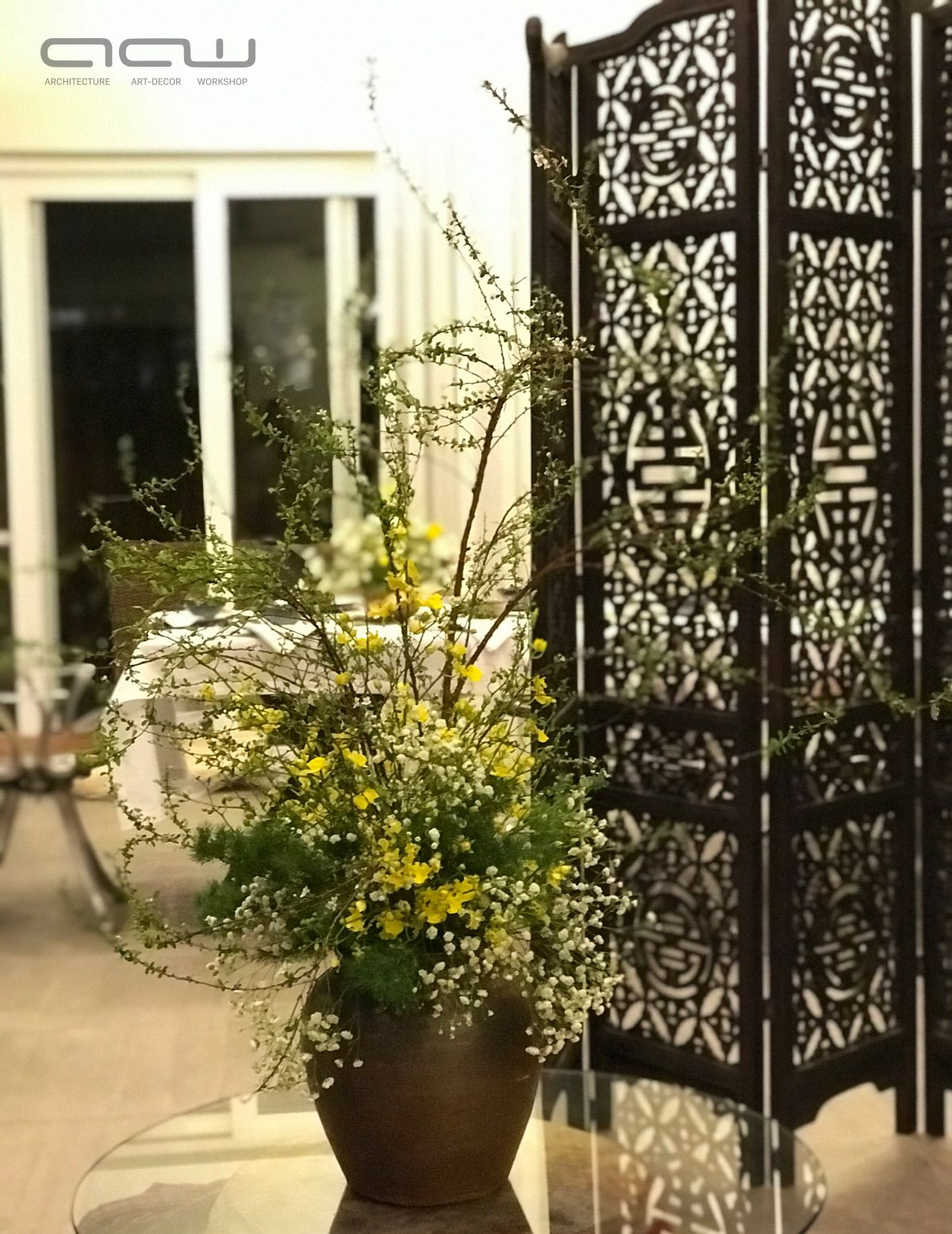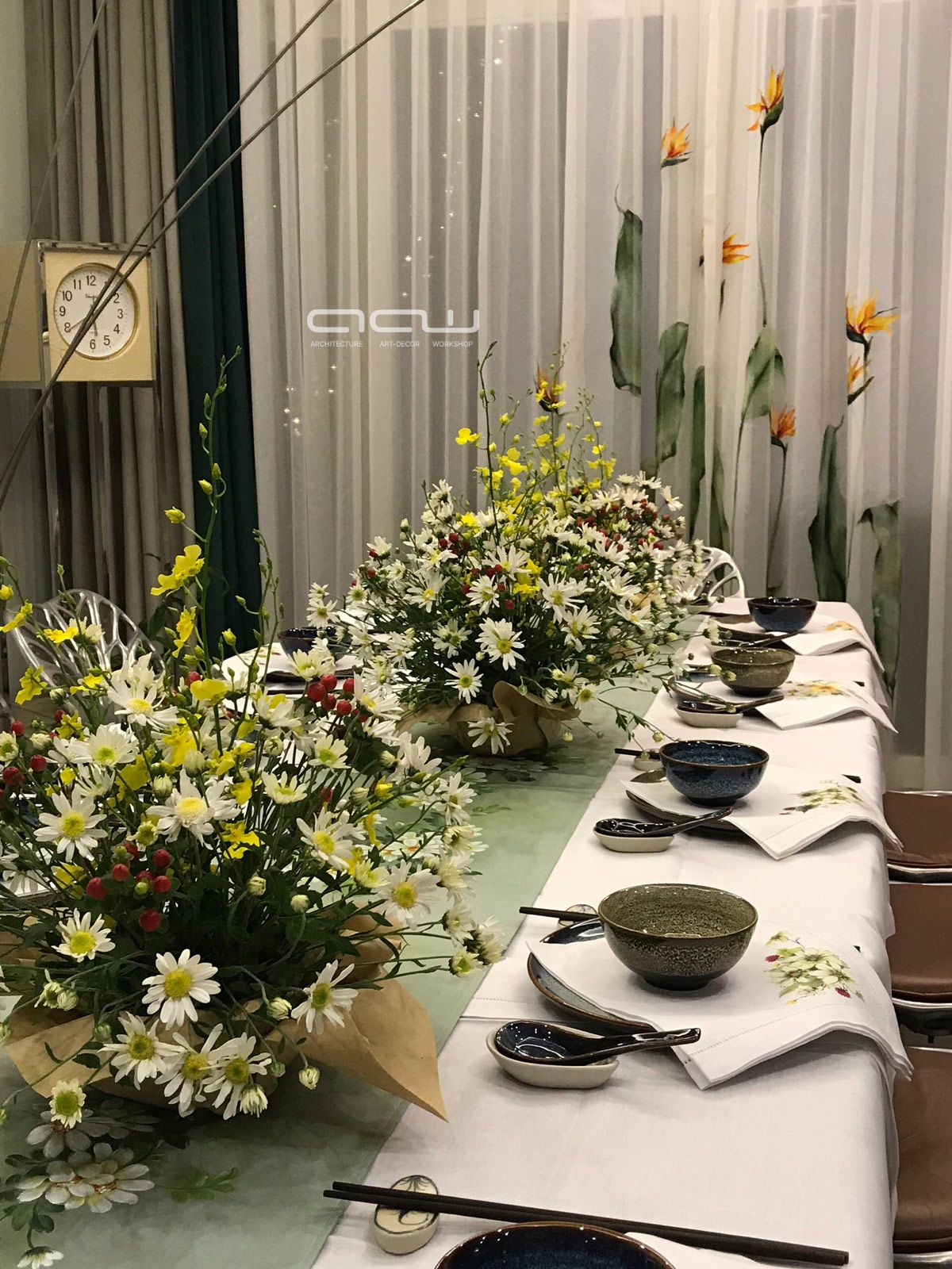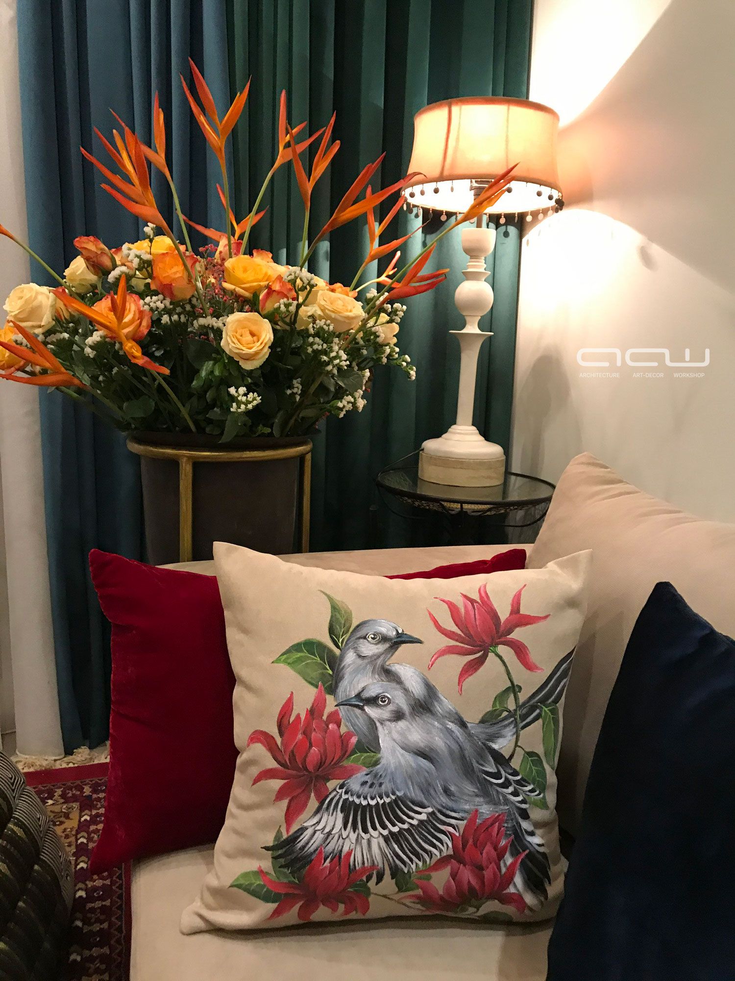 Cải tạo từ căn biệt thư đơn lập khu Vườn Tùng, Ecopark – Đôi ngũ AAW “chiều lòng” gia chủ bằng những góc nhỏ ấm cúng. Đôi khi nhấn nhá bằng bức tranh của họa sĩ Đinh Quân, lúc lại mềm mại buông thả với vô vàn sắc hoa. Là người quảng giao, thích tiệc tùng – Chủ nhà luôn nghĩ đến AAW đầu tiên mỗi khi Chị muốn tổ chức buổi tiệc nào đó. AAW cung cấp dịch vụ & chăm chút từng góc. Đến với không gian đó hay thậm chí chỉ là bức ảnh được chụp lại, quý khách sẽ luôn luôn “no nê” bởi bữa tiệc đầy màu sắc kích thích tất cả các giác quan của cơ thể con người.