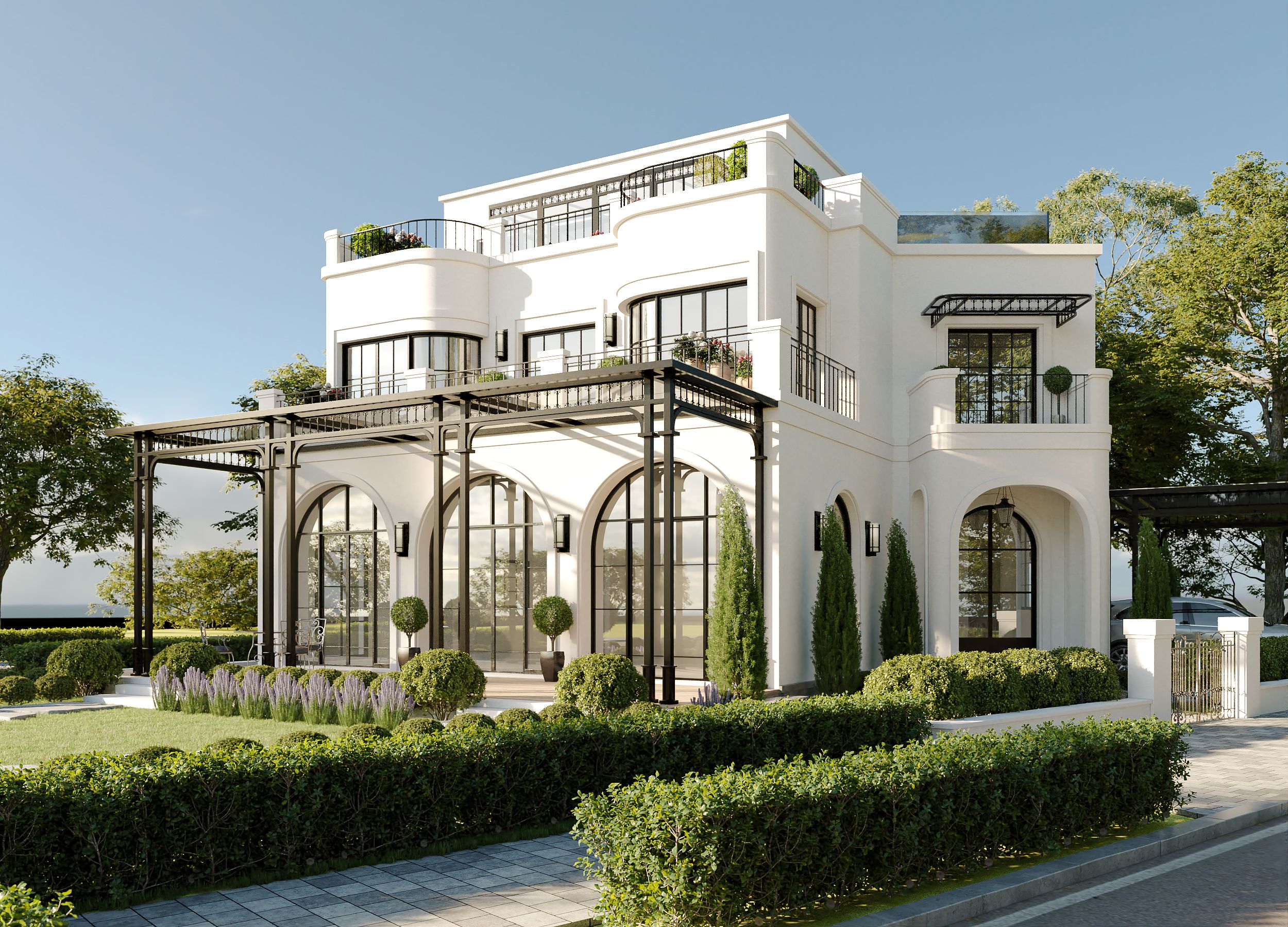 Tọa lạc tại Thạch Thất, Hà Nội, XANH VILLA là sự kết hợp hài hòa giữa phong cách tân cổ điển tinh tế và không gian sống xanh mát. Được thiết kế bởi AAW Construction & Design Company, biệt thự gây ấn tượng với tông màu trắng thanh lịch, hệ cửa vòm lớn bằng kính, cùng những đường nét kiến trúc mềm mại nhưng không kém phần hiện đại. Công trình mở ra một không gian sống gần gũi với thiên nhiên, tràn ngập ánh sáng tự nhiên và cây xanh.